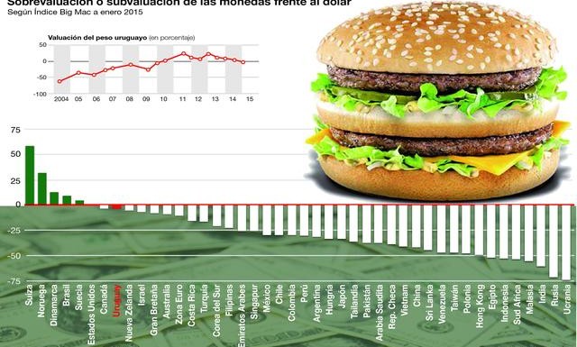 El peso uruguayo volvió a ser la segunda moneda de 48 países y la zona euro más cercana a su valor de equilibrio frente al dólar, de acuerdo al Índice Big Mac que elabora la revista británica The Economist y fue divulgado ayer. Ver más…http://www.elpais.com.uy/economia/finanzas/dolar-deberia-bajar-alcanzar-equilibrio.html